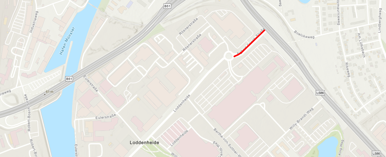 Im Zeitraum von Montag, 19. Januar, bis einschließlich Mittwoch, 21. Januar, wird die Egbert-Snoek-Straße in Fahrtrichtung vom Albersloher Weg zum Kreisverkehr gesperrt, damit erforderliche Sanierungsarbeiten durchgeführt werden können. Es wird eine Umleitung eingerichtet, damit die awm Standorte Rösnerstraße (Verwaltung, Zwischenlager) sowie der Recyclinghof Eulerstraße angefahren werden können.